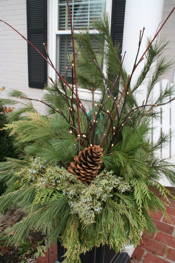 Incorporating display elements like decorative lanterns or twinkling fairy lights can also elevate your winter setup. The ambient glow paired with the lush greenery brings warmth to the chilly landscape and invites a cozy spirit into your outdoor space. Additionally, you can experiment with winter-themed planters adorned with burlap, pinecones, and ribbons, providing a creative flair that captures the season’s essence.
